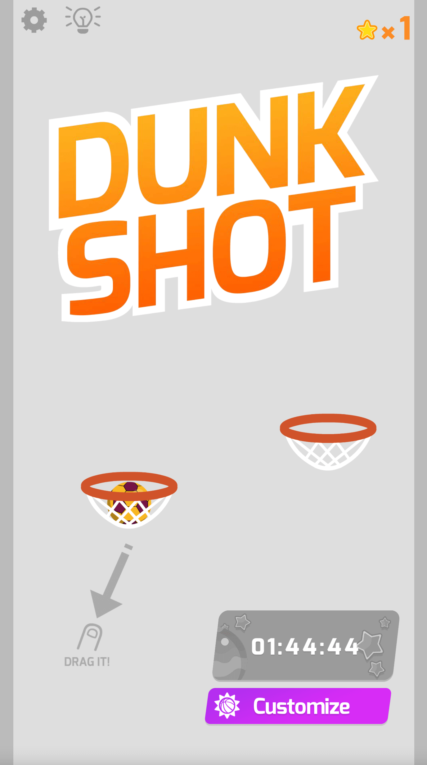 Dunk Shot Basketball is a popular basketball game that can be played on mobile devices. The game involves shooting a basketball into a hoop that moves up and down the screen, with the aim of getting as many baskets as possible within a set time limit. Collect stars to buy more balls..